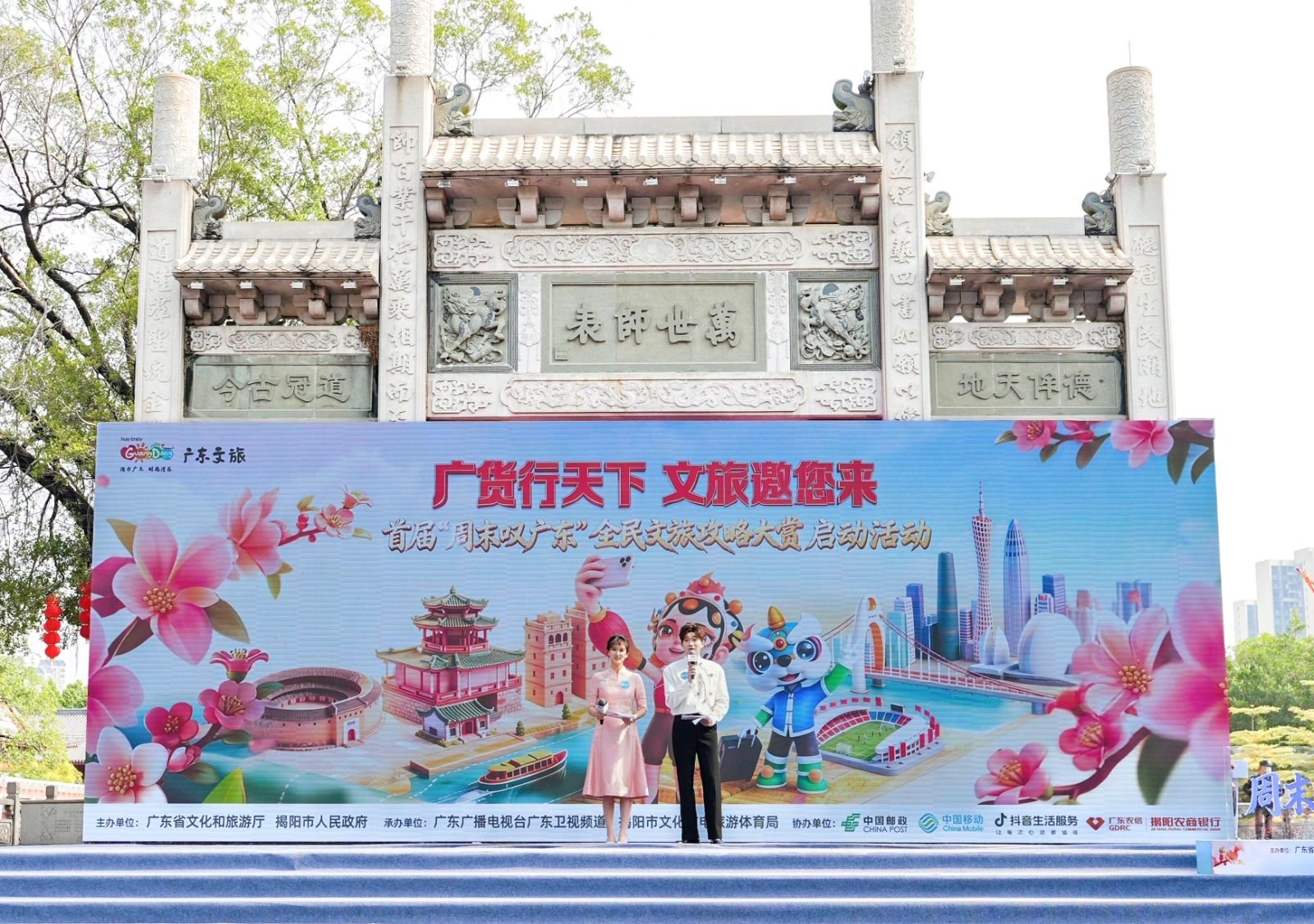 4月4日上午,广东揭阳古城学宫广场锣鼓喧天。随着英歌槌落、青狮腾跃,备受期待的《广货行天下・文旅邀您来——首届“周末叹广东”全民文旅攻略大赏》正式启动,一场属于全广东、面向全世界的文旅盛事,就此拉开大幕!本场启动活动由广东省文化和旅游厅、揭阳市人民政府联合主办,活动旨在深入贯彻落实2026年广东省高质量发展大会关于“推动先进制造业与现代服务业协同发展”的战略部署,全力打造“周末叹广东”广东文旅核心IP,多维度实现引客入粤、促消费稳增长的发展目标,让广东文旅的烟火气飘向全国、走向世界。