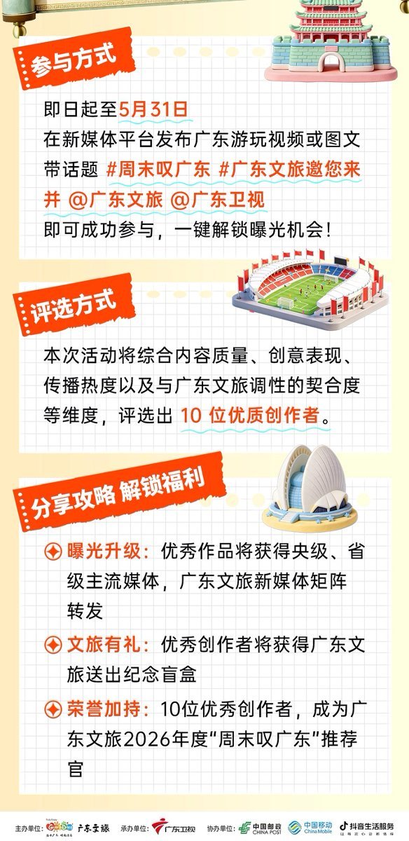 参与要求:带话题#周末叹广东,发布在个人自媒体账号即可参与;